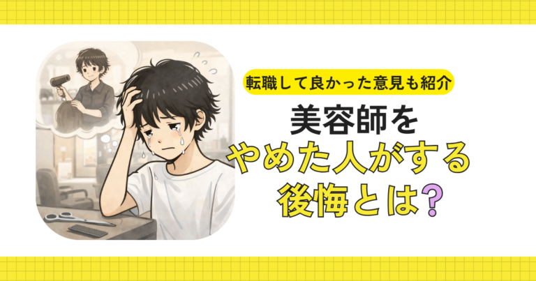 一方で、勢いで退職したあとに「やっぱり美容師を続ければよかった」と後悔するケースもあります。 本記事では「美容師の後悔」というキーワードを軸に、美容師を辞めた人が感じやすい後悔の理由と、反対に辞めて良かったと感じた人の声 … 続きを読む 美容師を辞めたら後悔する?転職して良かった意見も徹底解説